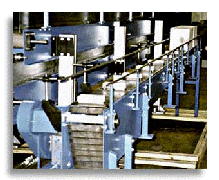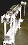 the cartoner discharge conveyor. Cartons are conveyed vertically